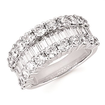 3 Ctw. Prong Set Baguette & Round Diamond Fashion Ring In 14K Gold